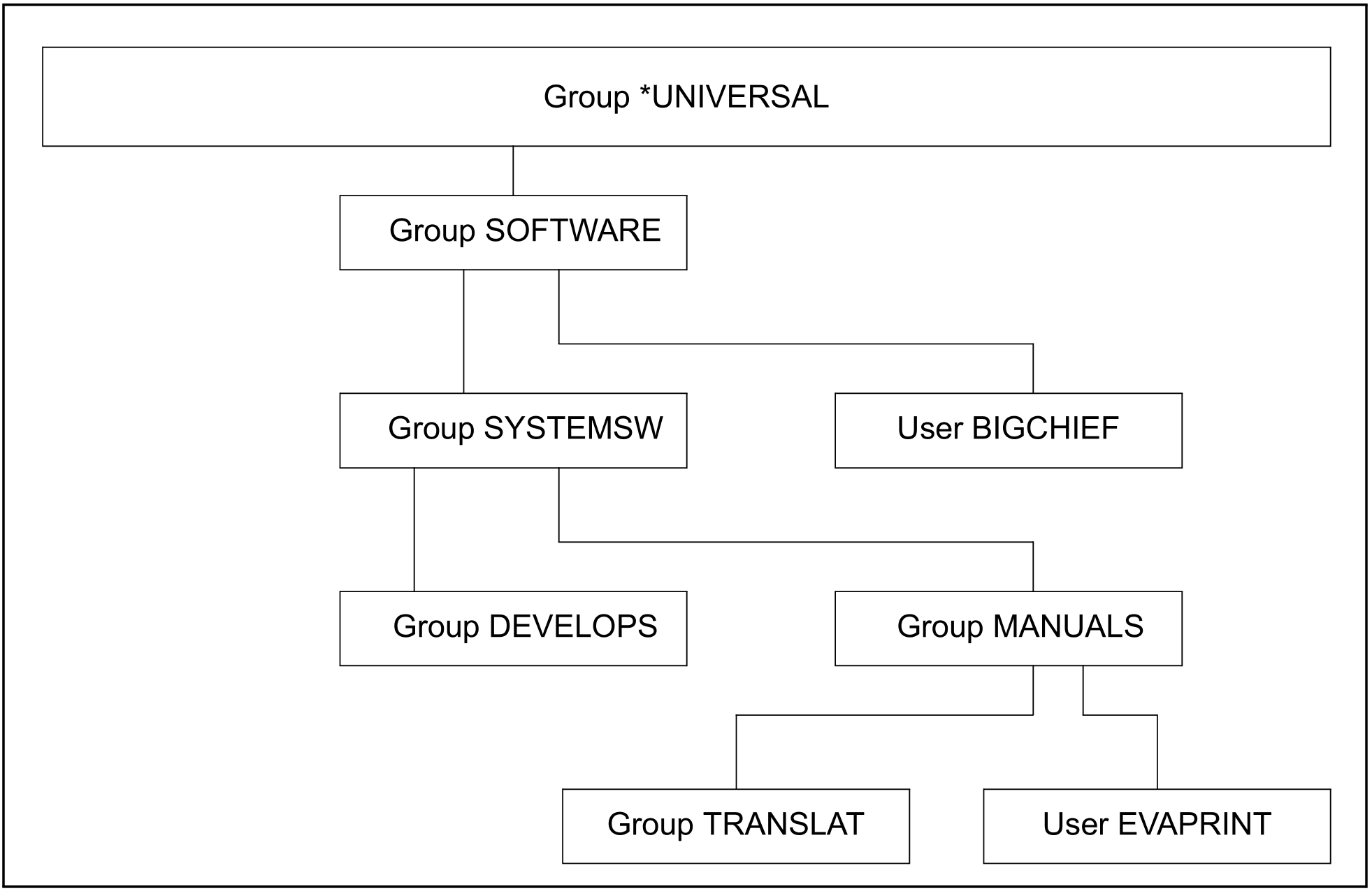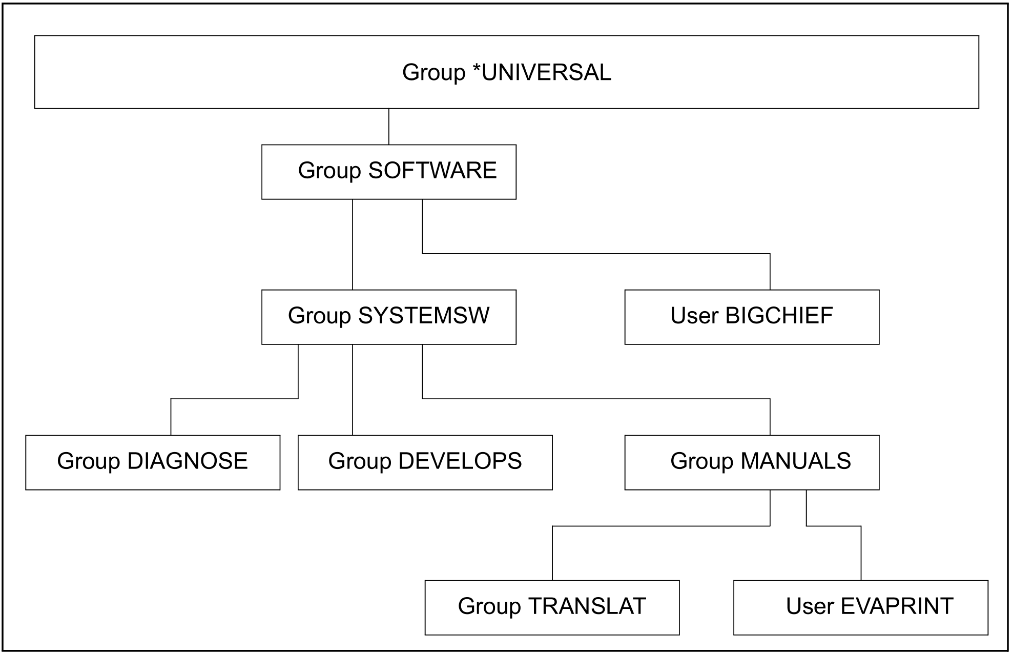 Teil 1: Gruppenverwalter BIGCHIEF richtet Benutzergruppe DEVELOPS als Untergruppe zu SYSTEMSW ein
