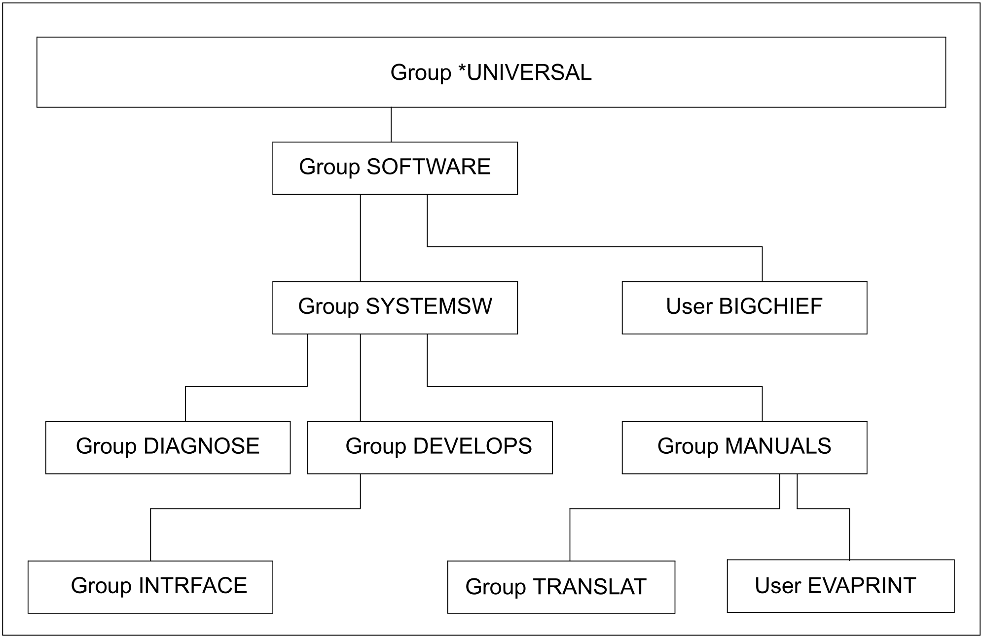 SHOW-USER-GROUP INFORMATION = *ALL 2018-03-05 12:25:48 ------------------------------------------------------------------------------ GROUP-IDENTIFICATION SYSTEMSW PUBSET X GROUP-ADMINISTRATOR *NONE ADM-AUTHORITY *MANAGE-GROUPS USER-GROUP-PREFIX *ANY GROUP-MEMBER-PREFIX *ANY UPPER-GROUP SOFTWARE MAX-SUB-GROUPS... LIMIT GROUP-HIERARCHY 50 LIMIT USER-ADM 0 FREE GROUP-HIERARCHY 22 FREE USER-ADM 0 MAX-GROUP-MEMBERS... LIMIT GROUP-HIERARCHY 50 LIMIT USER-ADM 0 FREE GROUP-HIERARCHY 25 FREE USER-ADM 0 . . . SUB-GROUPS DEVELOPS DIAGNOSE MANUALS NO GROUP-MEMBER SPECIFIED ------------------------------------------------------------------------------ SHOW-USER-GROUP INFORMATION = *ALL END OF DISPLAY