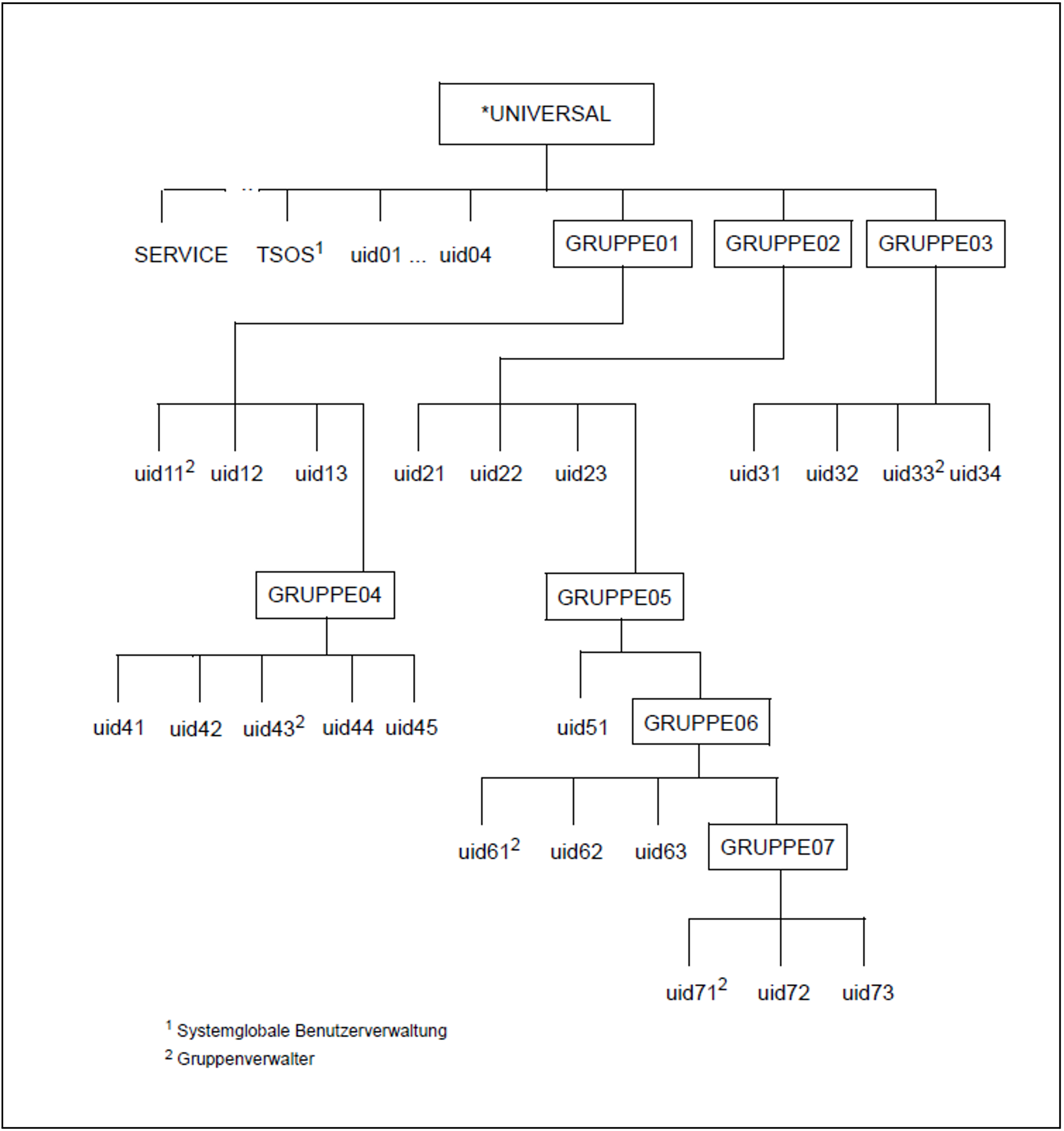 Wurzel der Gruppenstruktur | Benutzergruppenkennung *UNIVERSAL |