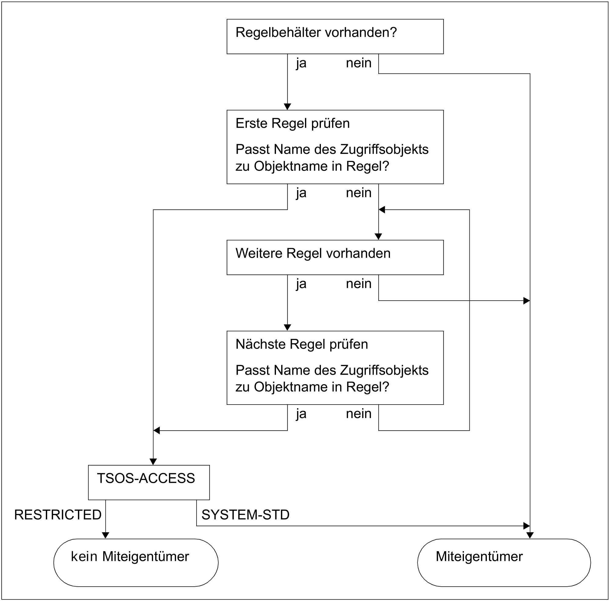 Die Prüflogik des Miteigentümerschutzes für die Benutzerkennung TSOS ist im folgenden Bild dargestellt: