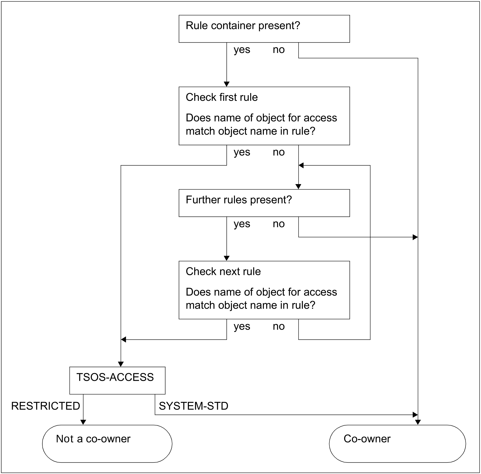 The following figure illustrates the logic of the co-owner protection checking process for the user ID TSOS: