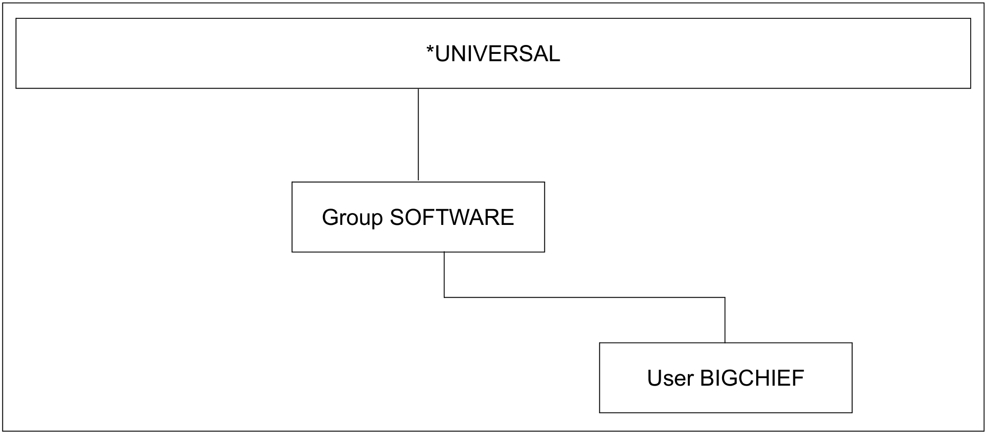 In the following examples, a user group structure for a software house is to be set up and then modified to match changes in the requirements. The initial situation is as follows:
