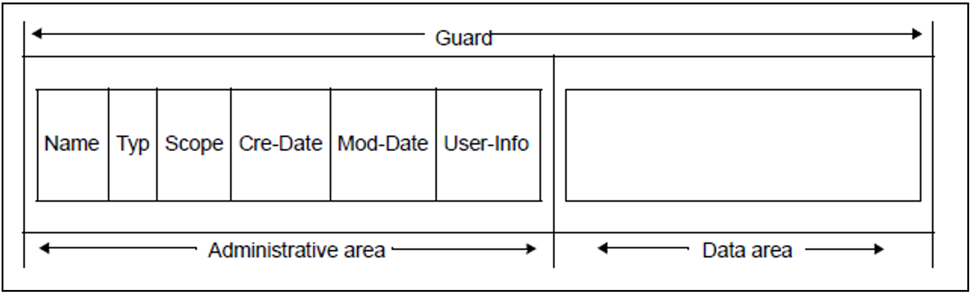 The guards administration system has no knowledge of the contents or semantic significance of the data part. It does not perform any evaluations relating to the contents of the data part. This is the responsibility of the default condition, default protection and co-owner protection administration systems which also provide the associated commands (described in more detail in the following sections).