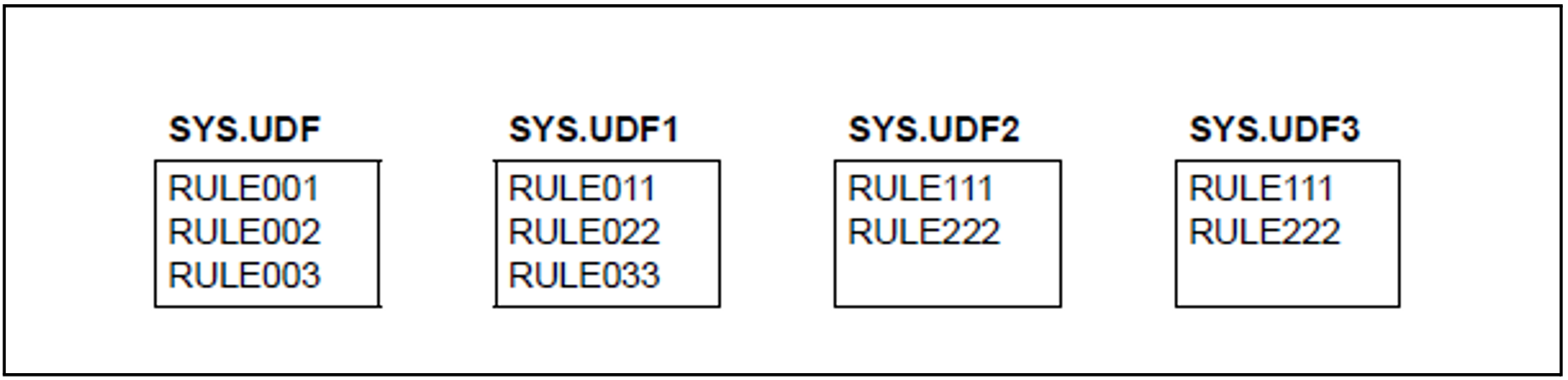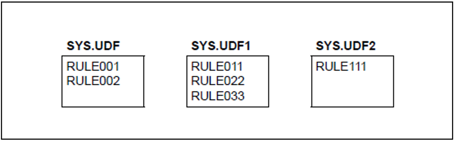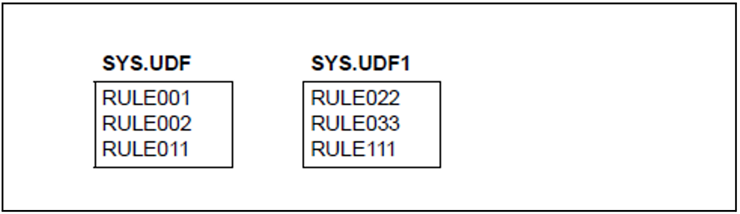 This means that there is now room for a new rule in rule container SYS.UDF1.