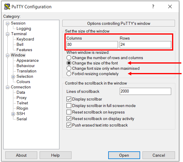 Make sure to retain the default window size of 80 columns and 24 lines!