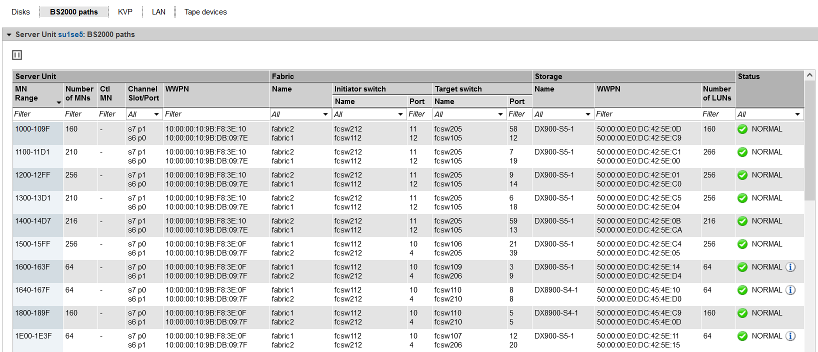 In the BS2000 paths tab the configured paths between server and storage are shown.