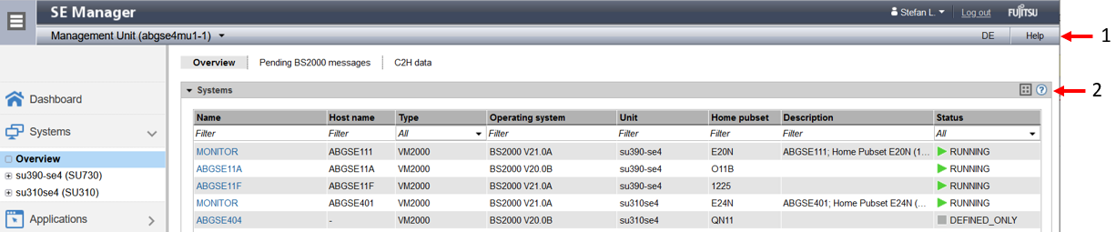 1 | Using Help in the SE Manager header area: |