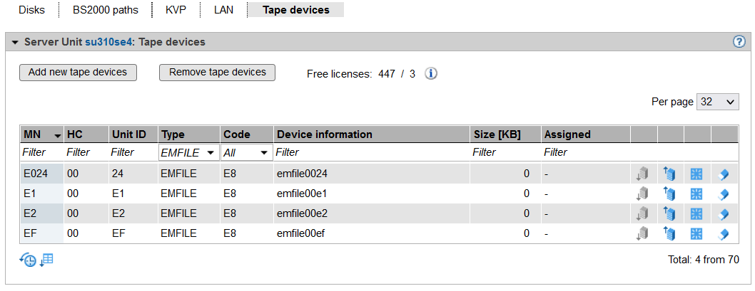 You manage emulated tape devices using the Tape devices tab of the SU /390 or SU x86, see the example below for an SU x86: