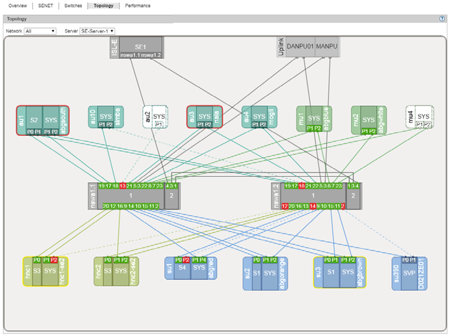 For a Management Cluster, you can select the SE server for which you want to display the topology, from the Server list. The default is the SE server of the local MU.