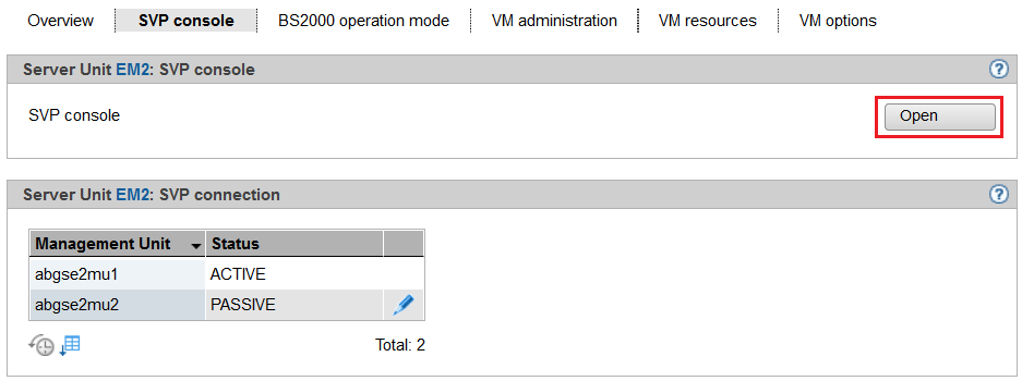 > | Click Open in the SVP console group: If the browser now displays a warning about the security certificate, click Continue to this website. |