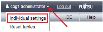 > | In the header area of the SE Manager's main window click on the arrow next to the login name and then, in the drop down list, click Individual settings to display the dialog for changing the session timeout: |