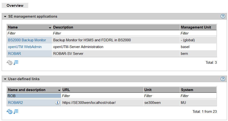 > | In the tree structure select Applications -> Overview. The Overview tab opens. |
