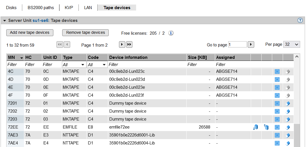 The Tape devices tab offers the following functionality for managing the tape devices: