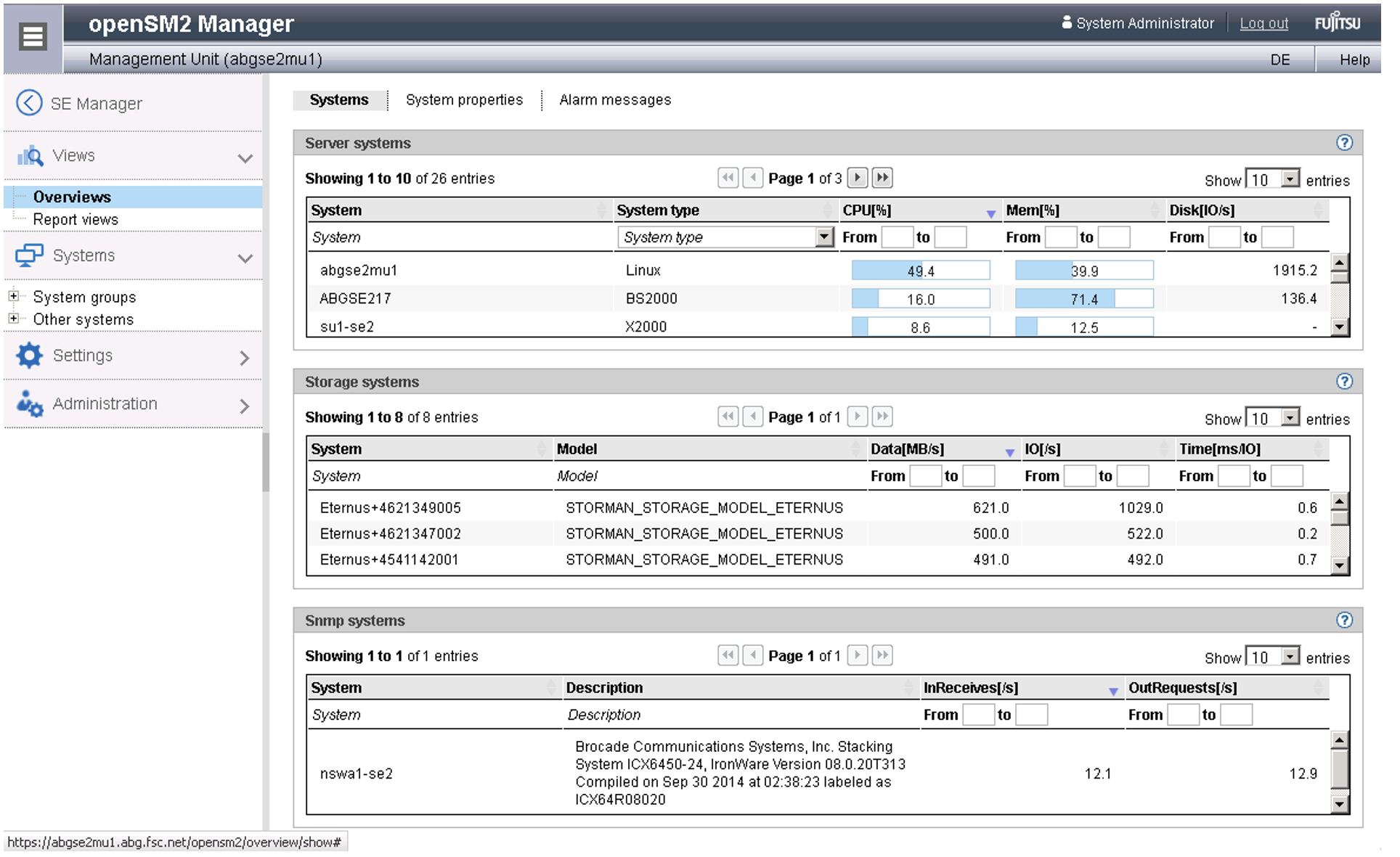 The openSM2 Performance Monitor can be integrated into the SE Manager. This enables the performance of the Server Units and the systems running on them to be monitored centrally using the SE Manager. openSM2 is optional and chargeable.