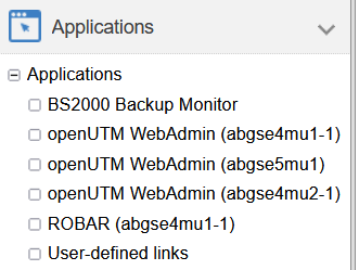 In the Applications menu, the openUTM WebAdmin and ROBAR add-ons are displayed MU-specifically in the application overview.