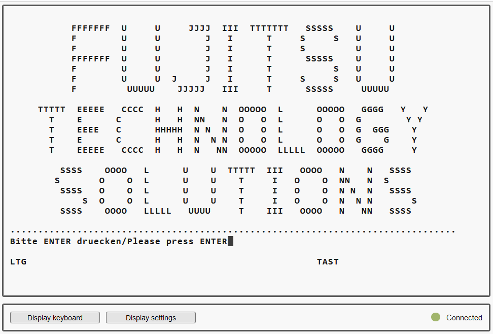 A new window opens in which a terminal emulation sets up the connection to the SVP console: