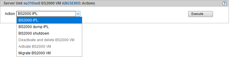 To start checking the preconditions and/or to start the LM, the action “Migrate BS2000 VM” needs to be chosen and "Execute" be clicked in the action field of the main window: