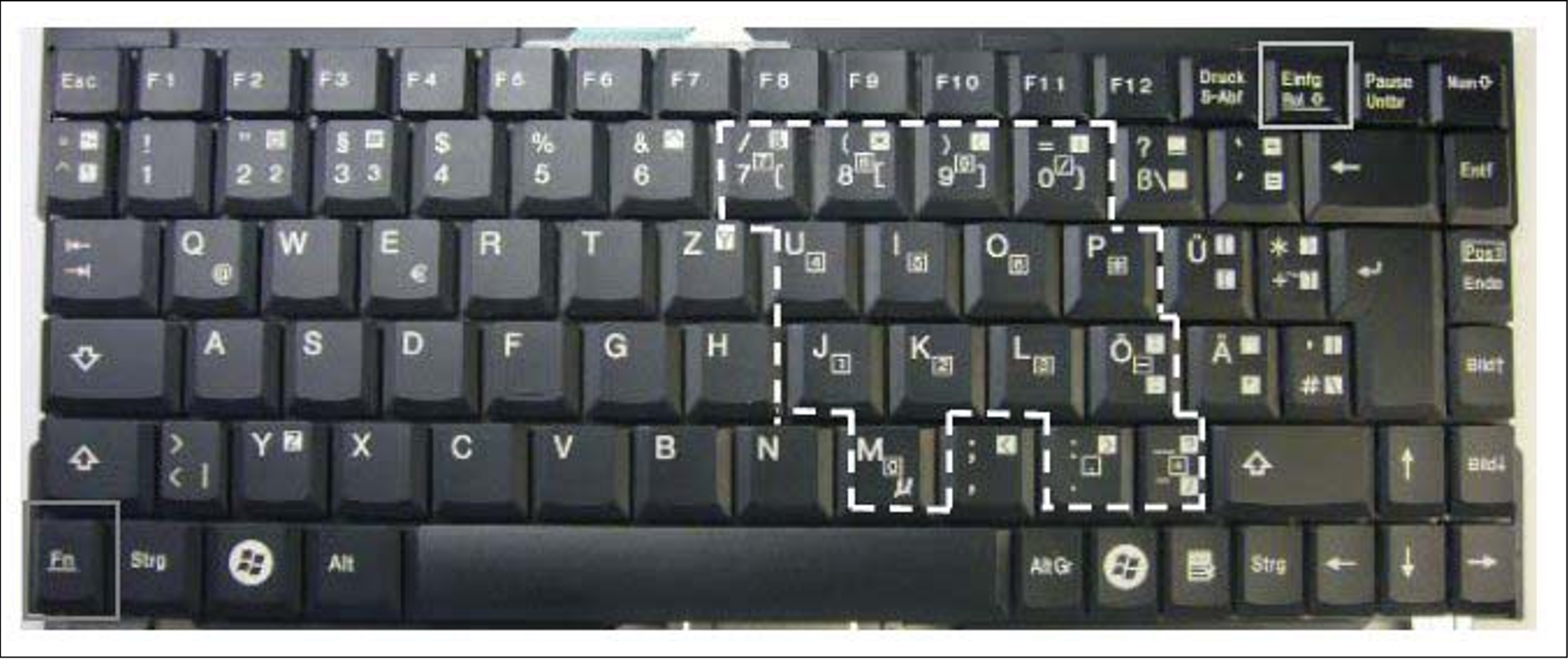 By pressing both the Fn key and a key with underscored characters, you can use the function indicated by the characters (for example, Scr Lk, Prt Sc, and SysRq).
