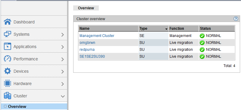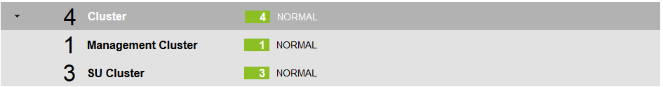 In the list view of the dashboard the Management Cluster and the SU Cluster are differentiated: