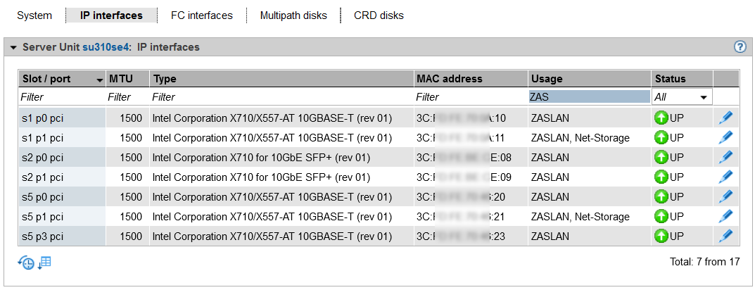 The IP interfaces tab provides information about the unit's LAN interfaces. The following function is available to you: