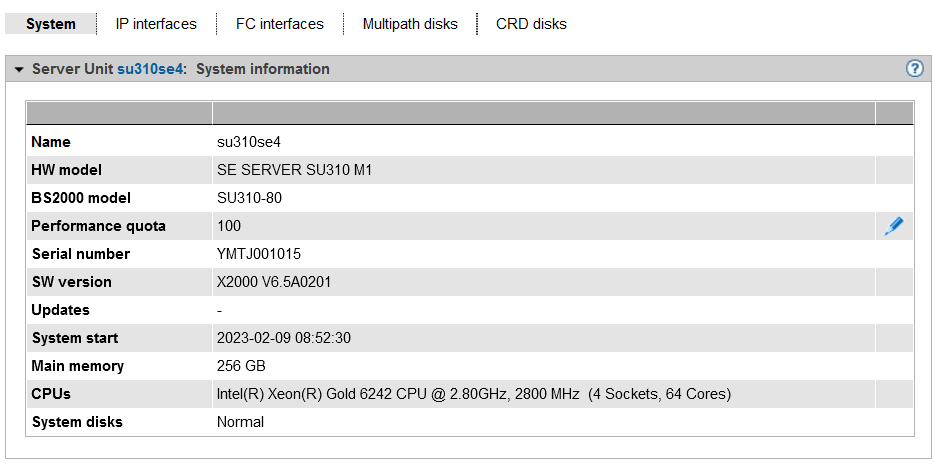 The CRD disks tab in the Information menu displays the status of the internal and, if existing, the external CRD disks (configuration disks) of the SU x86.