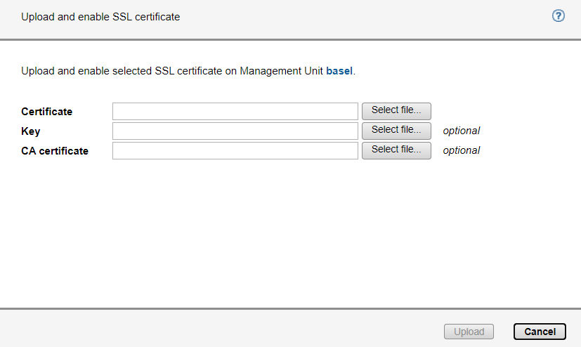 The files specified are uploaded into the target system, activated immediately and displayed as the current SSL certificate.