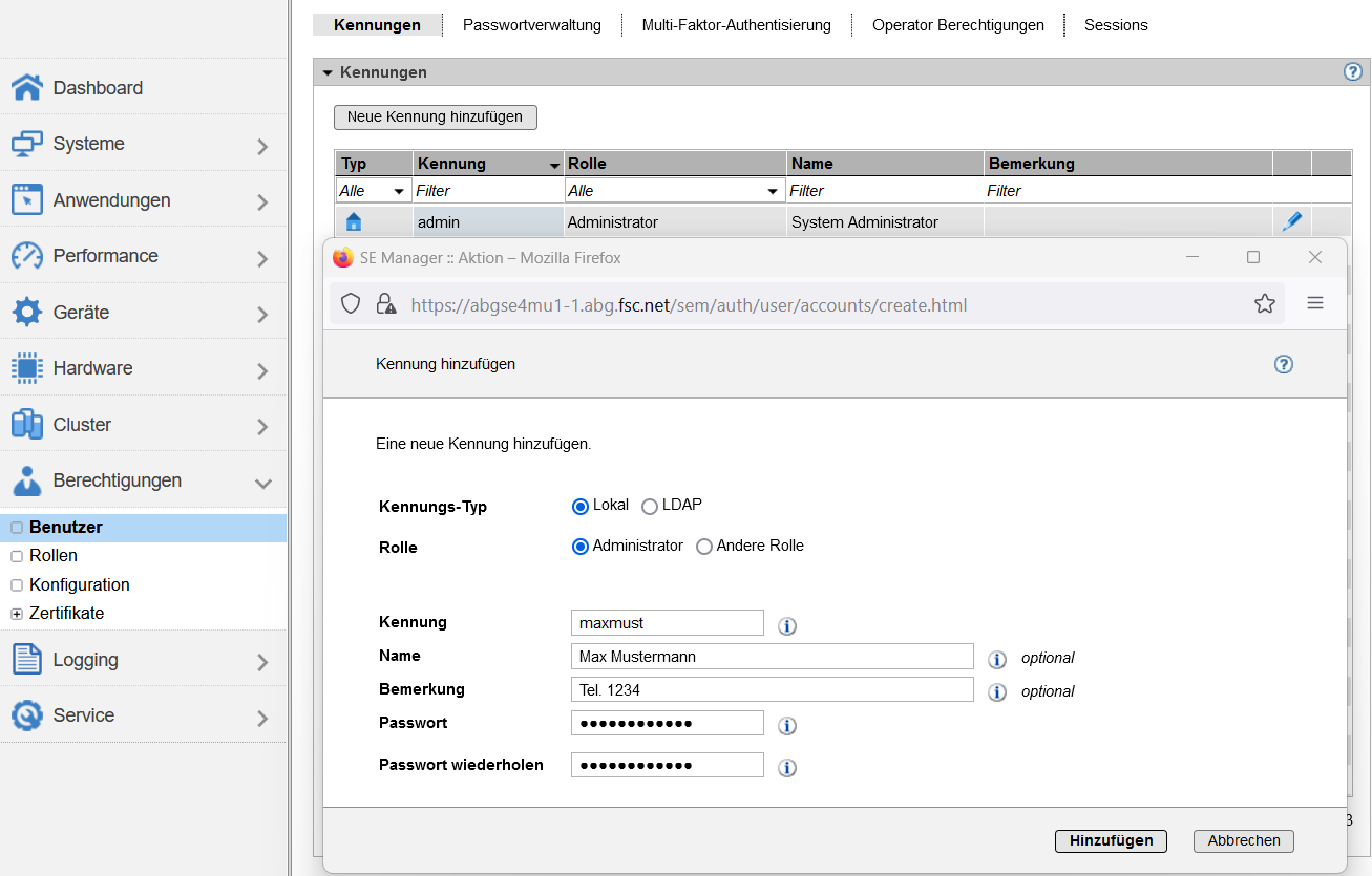 Alle Kennungen – lokale und LDAP – gelten im gesamten Management Cluster, sie stehen an jeder MU eines jeden SE Servers gleichermaßen bereit.