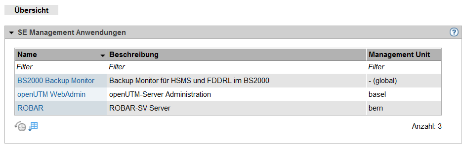 Sie erhalten eine Übersicht über alle SE Management-Anwendungen des SE Verwaltungsbereichs und können benutzerdefinierte Verweise verwalten: