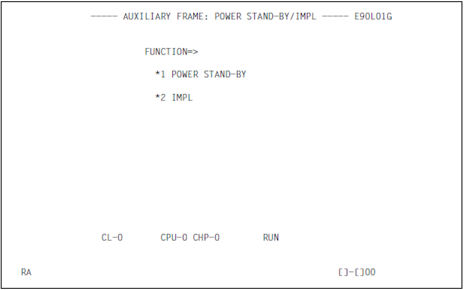 Bild 20: Bildschirm AUXILIARY FRAME: POWER STAND-BY/IMPL