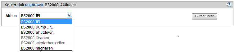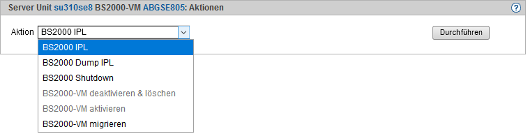 - Ein Wiederherstellen des Native-BS2000-Systems kann bei Bedarf mit der Aktion „BS2000 wiederherstellen" durchgeführt werden.