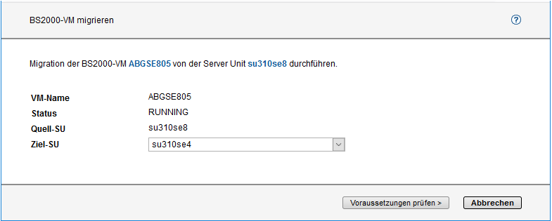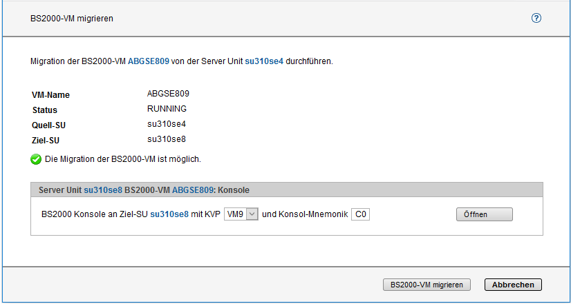 Die Aktion bzw. der Wizard „BS2000 migrieren“ wird nur angeboten, wenn die SU Teil eines SU Clusters ist und eine LM prinzipiell möglich ist.