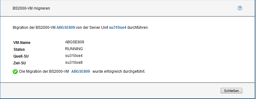 Durch Anklicken der Schaltfläche „BS2000-VM migrieren“ wird die LM gestartet.