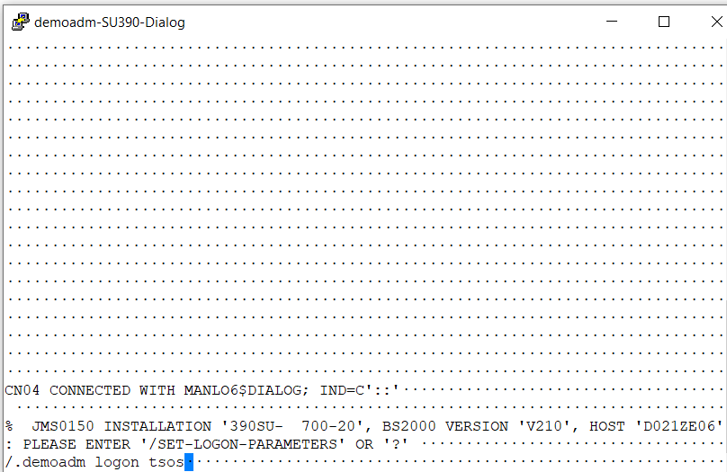 Nach erfolgreicher Anmeldung wird die Verbindung mit dem BS2000-Dialog geöffnet und Sie können sich im BS2000 anmelden.