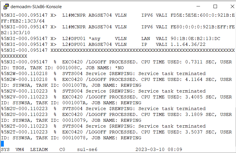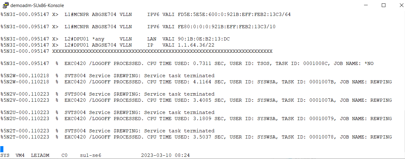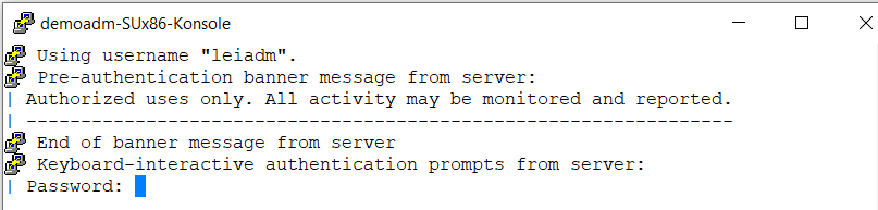 > | Geben Sie im Konsolfenster das Passwort für die angegebene Kennung an: Nach erfolgreicher Anmeldung wird die Verbindung mit der Konsole des BS2000-Systems, dem der angegebene KVP zugeordnet ist, geöffnet: |