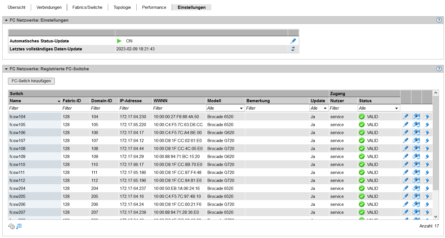 Aktionen zur Änderung der Konfiguration stehen nur einem Administrator bzw. FC-Netzwerk-Administrator zur Verfügung.