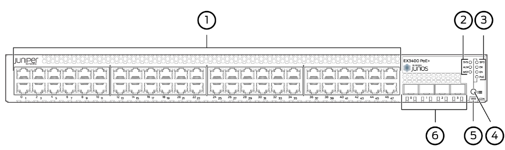 Bild 26: Net Unit (Juniper EX3400-48-AFI): Schema Anschlüsse