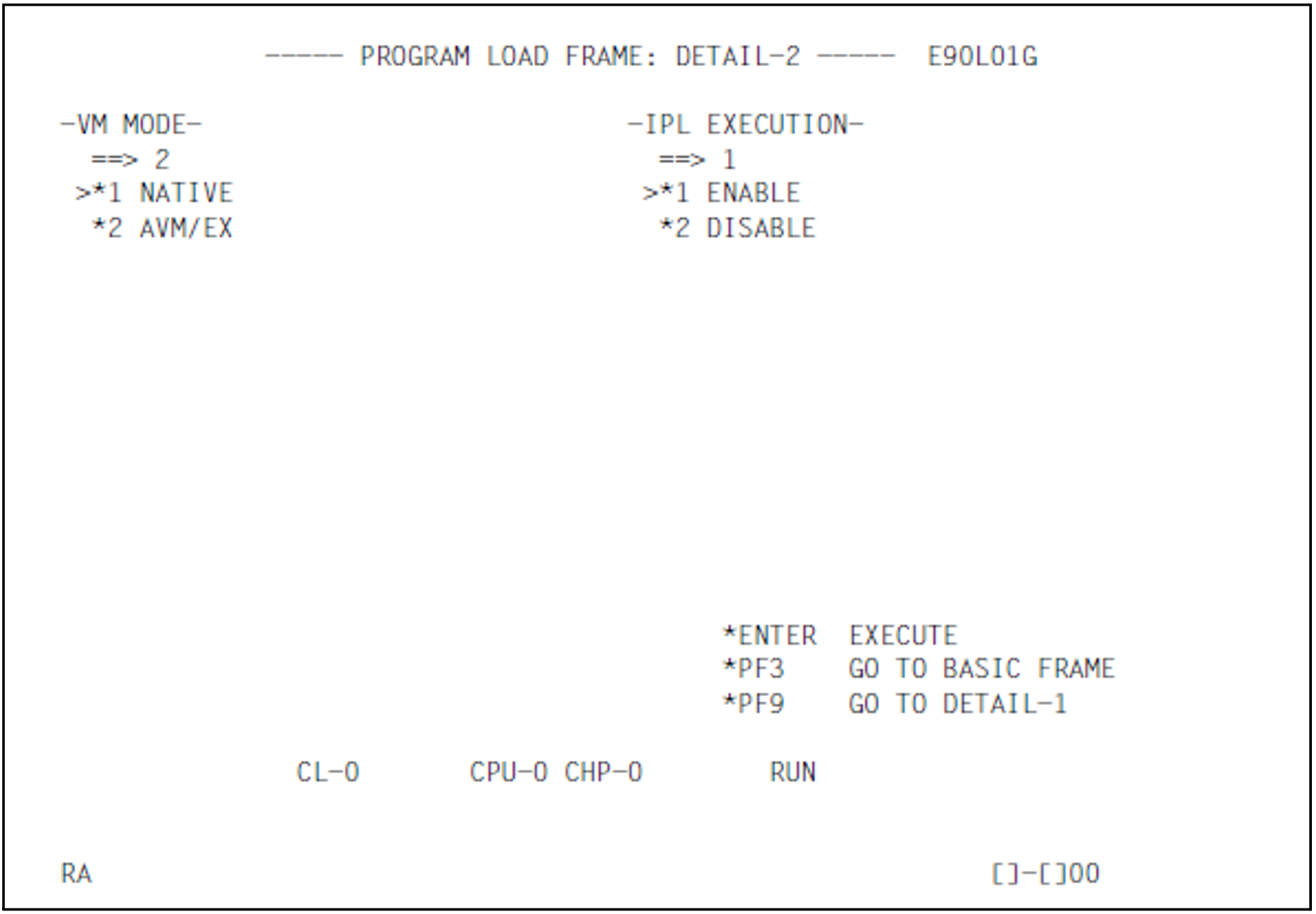 > | Klicken Sie auf PF9 Der Bildschirm PROGRAM LOAD FRAME: DETAIL-2 wird ausgegeben: |