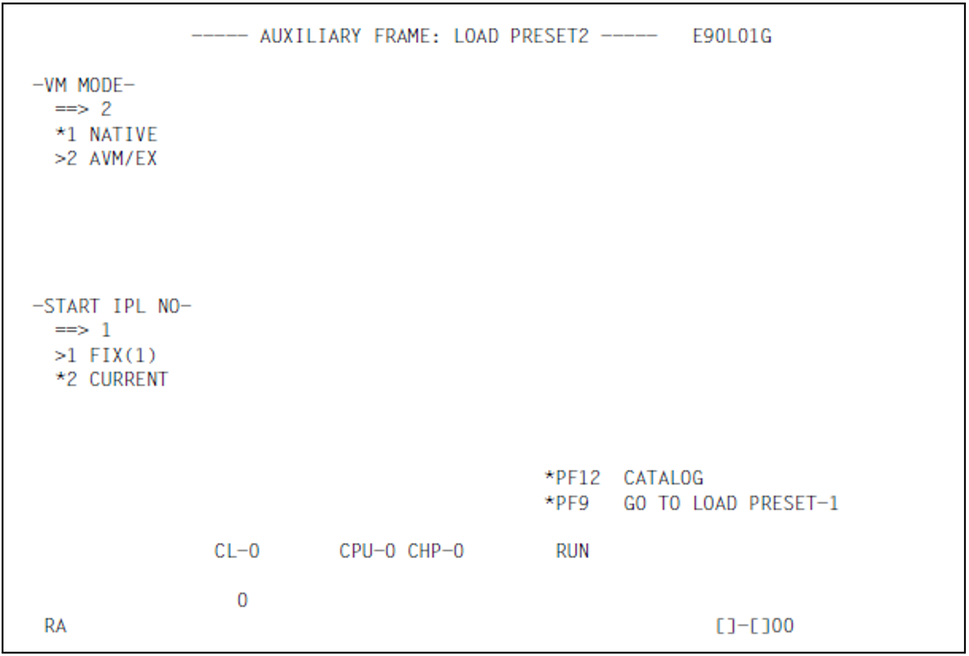 Im PROGRAM LOAD FRAME PRESET2 wird festgelegt, welcher Operating-Mode nach dem Einschalten des Servers eingestellt sein soll.