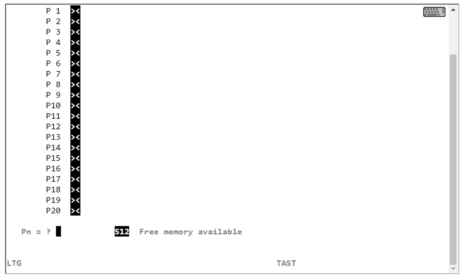 > | Drücken Sie im EMDS-Fenster Esc Shift - F11 (PP nach der Tabelle auf "Tastenkombination für Sonderzeichen verwenden") Das P-Tasten-Menü wird ausgegeben: |