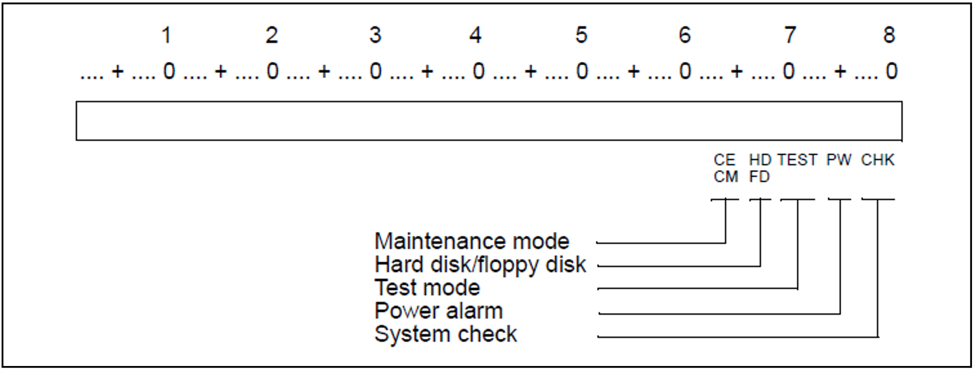 70 - 73 | keine Anzeige TEST | Das System ist im User-Modus. Das System ist im Test-Modus = Maintenance-Modus (Anzeige gemeinsam mit CE) |
