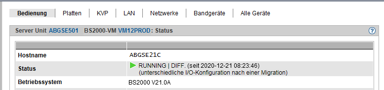 Andernfalls kommen bei der LM auch für nicht zugewiesene Geräte mit unterschiedlicher Generierung Warnungen und solche Geräte können dann auf der Ziel-SU der migrierten BS2000-VM gar nicht zugewiesen werden.