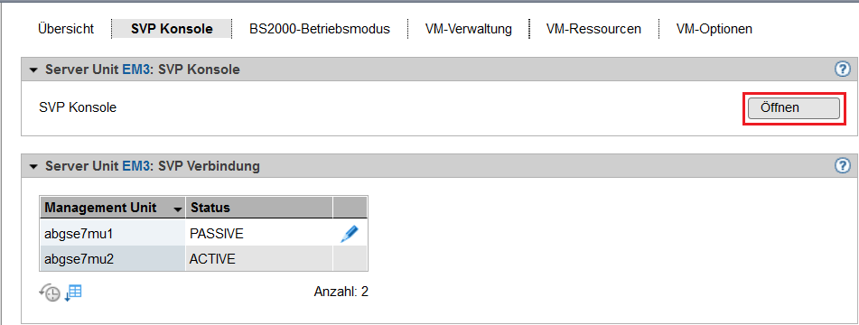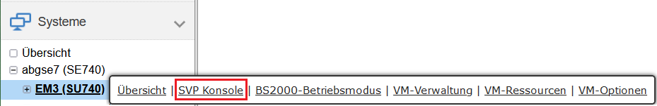 > | Zur Registerkarte SVP Konsole der SU /390 wechseln: |