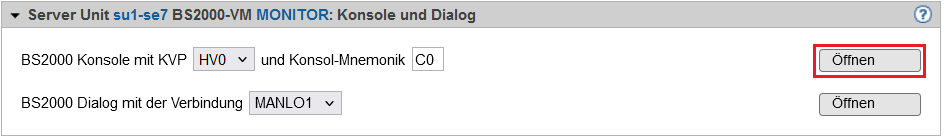 Für weitergehende Administrationsaufgaben im BS2000 müssen Sie sich am BS2000 anmelden, siehe Abschnitt „Wie eröffne oder beende ich einen BS2000-Dialog?".