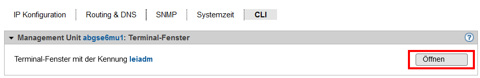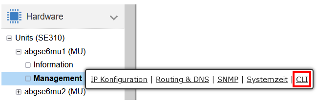 > | Bei der gewünschten MU im Menü Management die Registerkarte CLI auswählen: |