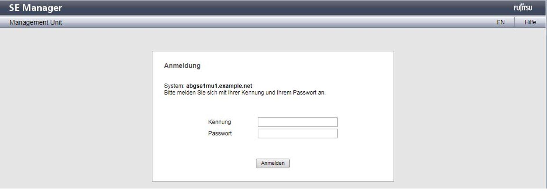 Eine Management Unit ist eingeschaltet. Ggf. muss erst eine Management Unit (MU) eingeschaltet werden, damit der Zugang zum SE Manager möglich ist (siehe „Wie schalte ich eine Management Unit über die lokale Konsole ein?" oder „Wie schalte ich eine Management Unit über iRMC ein?").