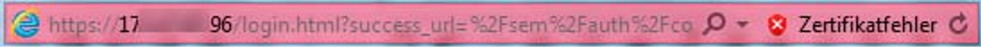 > | Akzeptieren Sie das Laden der Web-Seite. Sie erhalten die Login-Seite. Die Adresszeile des Browsers zeigt als Warnung Zertifikatfehler an. Informationen über das mögliche Sicherheitsrisiko erhalten Sie, wenn Sie auf Zertifikatfehler klicken. Prüfen Sie das angezeigte Zertifikat. Fahren Sie nur fort, wenn keine Zweifel am Zertifikat bestehen. Das Zertifikat ist jetzt temporär für diese Session akzeptiert und Sie können jetzt mit dem SE Manager dieses Systems arbeiten. |