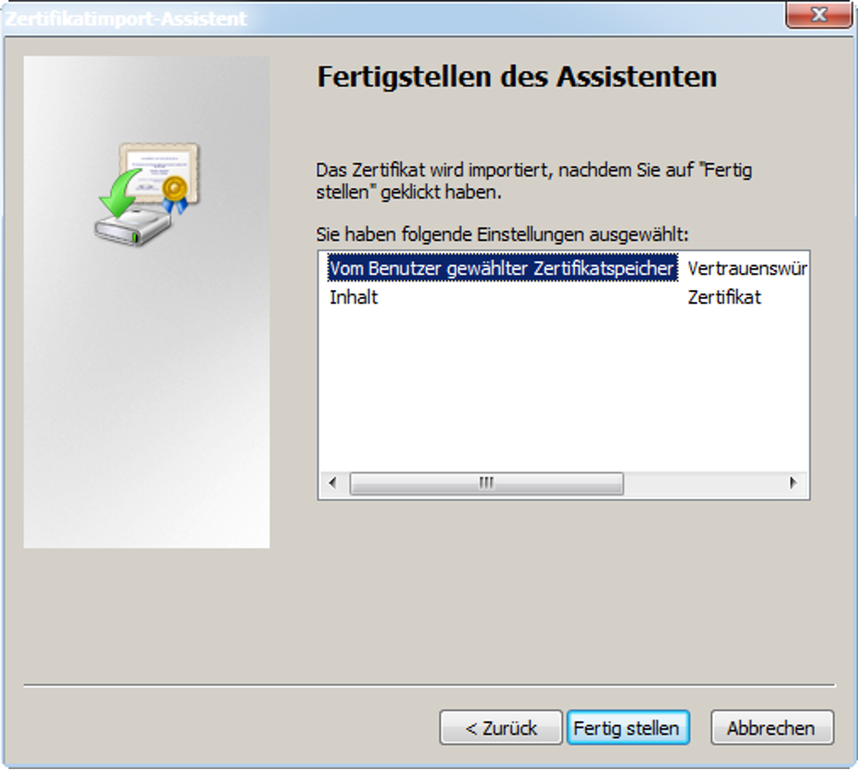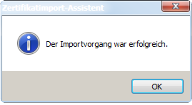 > | Beenden Sie nach erfolgreichem Import den Zertifikatsimport-Assistent mit OK: |