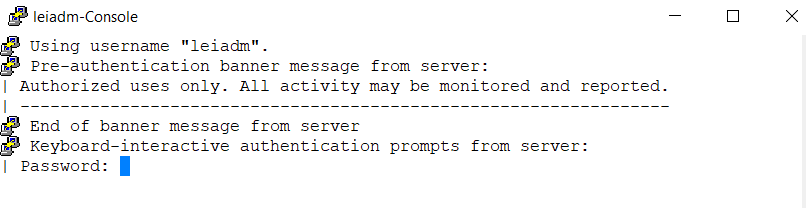 > | Click Open, and in the console window, enter the password for the specified account: |