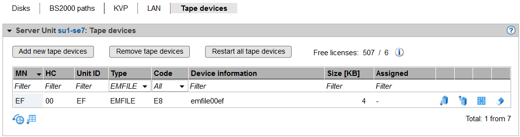 You manage emulated tape devices using the Tape devices tab of the SU /390 or SU x86, see the example below for an SU x86: