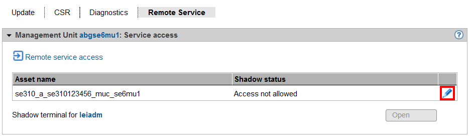 > | Select the Remote Service tab next to the MU in the Service menu: |